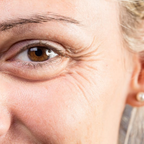 Fine lines and wrinkles are early signs of skin aging caused by reduced collagen and repetitive facial movements.