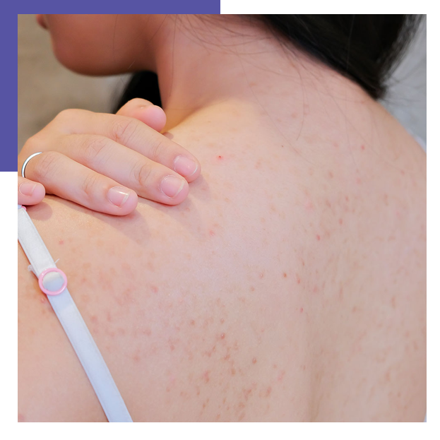 The Back-Acne Extraction Facial focuses on deep cleansing, exfoliation, and manual extraction of clogged pores to reduce acne and prevent future breakouts. The treatment includes:
